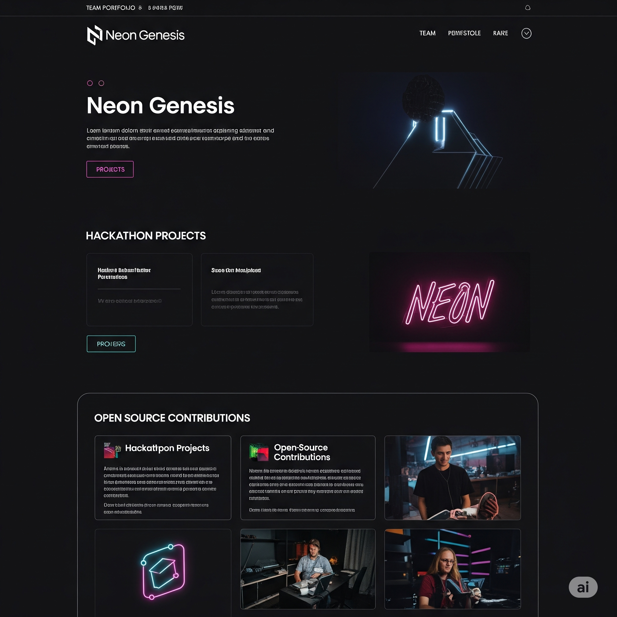 A dynamic and visually-rich portfolio website for the "Neon Genesis" team, featuring engaging parallax animations and automated workflows with Zapier to showcase our capabilities and projects.